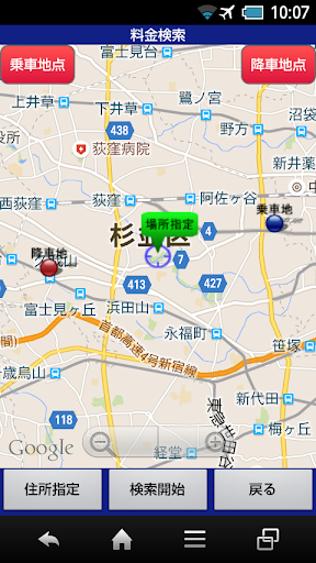 3.タクシー料金検索機能で乗車地点、下車地点を指定するだけでタクシーの概算料金を調べることができます。