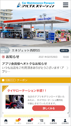 当社の公式アプリ「アルプスステーション会員アプリ」ではアプリで簡単に洗車・コーティングなどのご予約や愛車のメンテナンス管理が可能の他、当店で利用いただけるお得なクーポンや各種メニューの割引情報を配信しております。