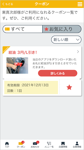 登録した店舗で実施中のキャンペーン情報や各種最新情報をお届けします。