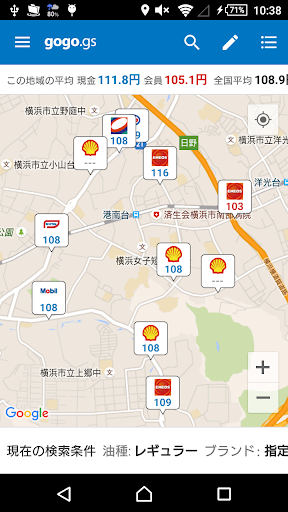 ・ガソリン価格の表記のない店舗を地図上に表示しないオプションを利用できます