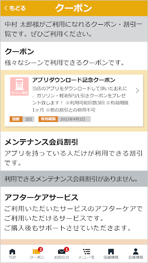 オイル交換などお車のメンテナンスもクーポンで更にお得にご利用頂けます。