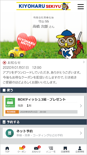 当社の公式アプリ「キヨハルセキユアプリ」ではアプリで簡単に洗車・コーティングなどのご予約や愛車のメンテナンス管理が可能の他、当店で利用いただけるお得なクーポンや各種メニューの割引情報を配信しております。