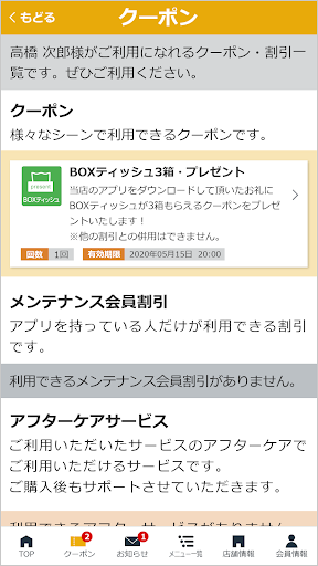 オイル交換などお車のメンテナンスもクーポンで更にお得にご利用頂けます。