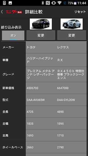 買いたい車が絞れなかったら比較機能で2つの車を比較検討出来ます。
