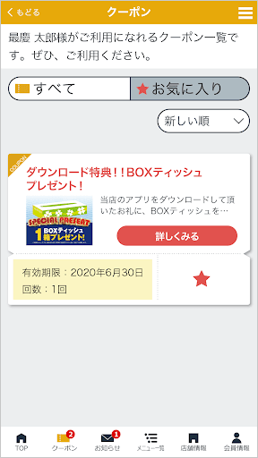 登録した店舗で実施中のキャンペーン情報や各種最新情報をお届けします。