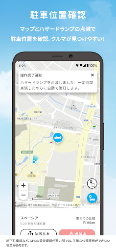 アプリの地図上でクルマの位置を表示し、クルマに近づいたらハザードランプを点滅することができます。位置の共有機能で、待ち合わせでもスムーズに合流できます。*2