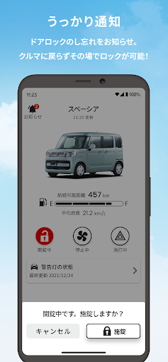 ホーム画面でガソリン残量などを一目で確認できたり、離れた場所からクルマを操作したり、クルマの状況に応じた通知を受け取ることができます。