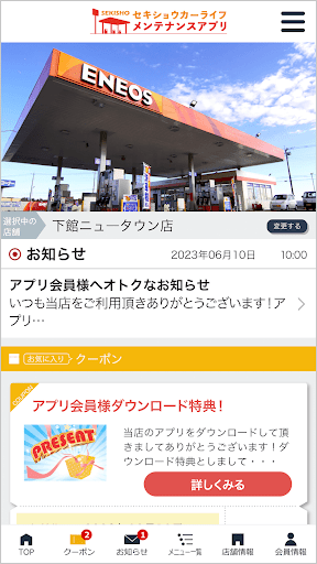 当社の公式アプリ「セキショウカーライフメンテナンスアプリ」ではアプリで簡単に洗車・コーティングなどのご予約や愛車のメンテナンス管理が可能の他、当店で利用いただけるお得なクーポンや各種メニューの割引情報を配信しております。