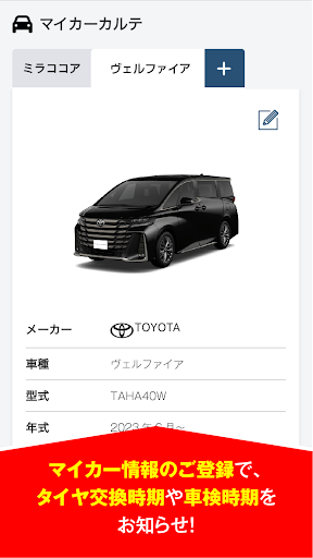 自分の愛車の情報を入力いただくと、次回車検日やタイヤ、エンジンオイルの交換時期までアプリで確認いただけるようになりました。