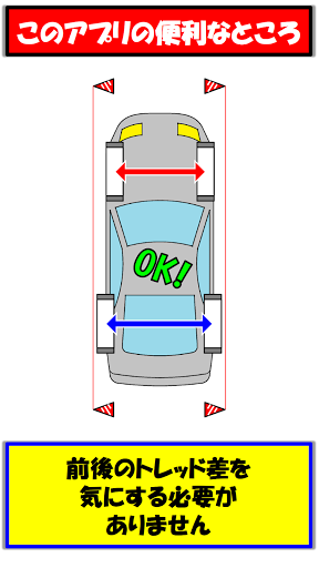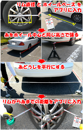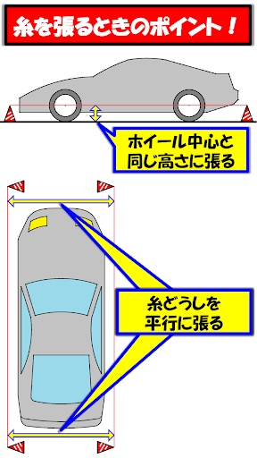※ラテラルロッド付きの車で車高を変更するなどし、左右輪が車体センターにない場合、