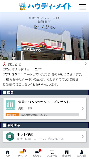 当社の公式アプリ「ハウディ・メイト」ではアプリで簡単に洗車・コーティングなどのご予約や愛車のメンテナンス管理が可能の他、当店で利用いただけるお得なクーポンや各種メニューの割引情報を配信しております。