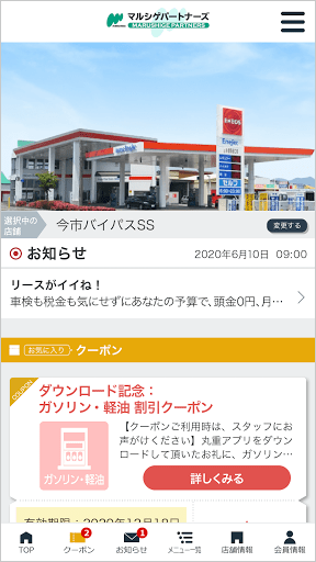 当社の公式アプリ「マルシゲパートナーズアプリ」ではアプリで簡単に洗車・コーティングなどのご予約や愛車のメンテナンス管理が可能の他、当店で利用いただけるお得なクーポンや各種メニューの割引情報を配信しております。