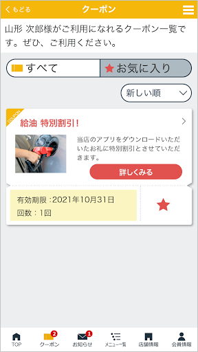 登録した店舗で実施中のキャンペーン情報や各種最新情報をお届けします。