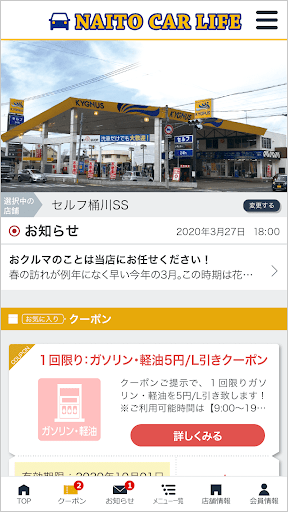 当社の公式アプリ「内藤カーライフ」ではアプリで簡単に洗車・コーティングなどのご予約や愛車のメンテナンス管理が可能の他、当店で利用いただけるお得なクーポンや各種メニューの割引情報を配信しております。