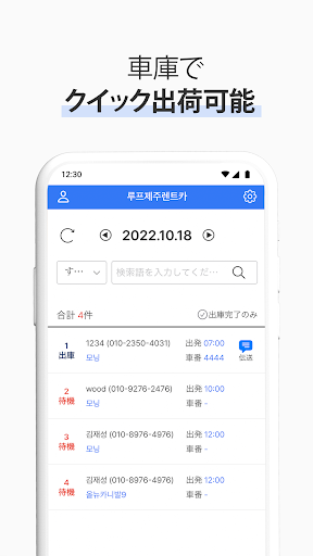 * 配車:レンタカー出庫時、アプリで顧客情報を確認し、迅速に出庫します。