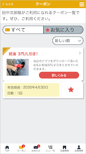 登録した店舗で実施中のキャンペーン情報や各種最新情報をお届けします。