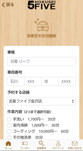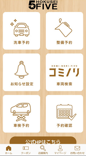 洗車、オイル交換、タイヤ交換などのお車の整備予約のほか、ガソリンクーポンの表示やコミノリ車両の検索もでき、お客様のカーライフをトータルでサポートします。