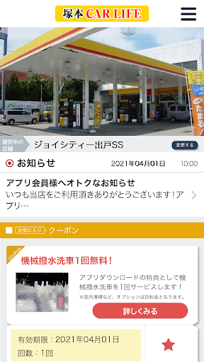 当社のアプリ「塚本油店カーライフアプリ」ではアプリで簡単に洗車・コーティングなどのご予約や愛車のメンテナンス管理が可能の他、ご登録いただいた店舗で利用いただけるお得なクーポンや各種メニューの割引情報を配信しております。