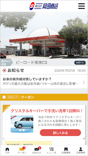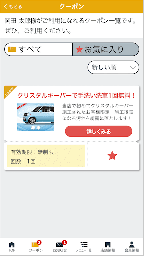 当社の公式アプリ「岡田カーケアパスポート」ではアプリで簡単に洗車・コーティングなどのご予約や愛車のメンテナンス管理が可能の他、当店で利用いただけるお得なクーポンや各種メニューの割引情報を配信しております。