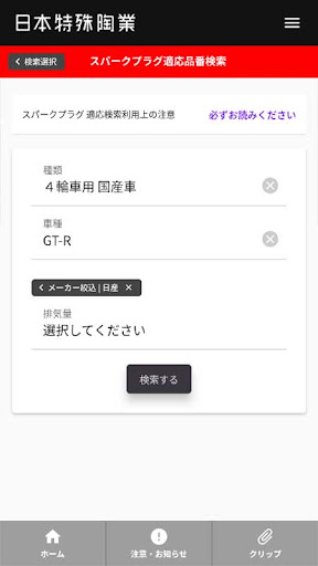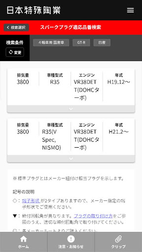 車種/車名・排気量を選択すれば適応する品番が出てきます。