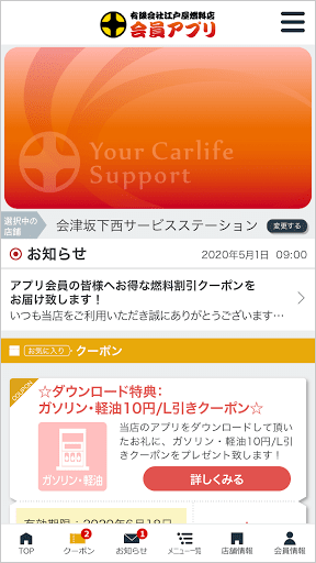 お客様に快適なカーライフをお過ごしいただけるよう、有限会社江戸屋燃料店の会員アプリを通して愛車のトータルにサポート致します!