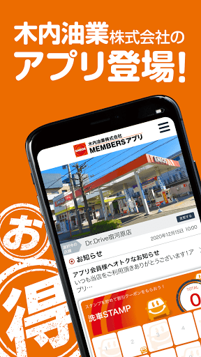 当社の公式アプリ「木内油業株式会社」は洗車をするたびにスタンプが貯まり、決められたスタンプ数を貯めるとお得なプレゼントクーポンと引き換えができる、貯めて楽しいもらえて嬉しいお得なアプリです。また、簡単に洗車・コーティングなどのご予約や管理が可能の他、ご登録いただいた店舗で利用いただけるお得なクーポンや各種メニューの割引情報を配信しております。