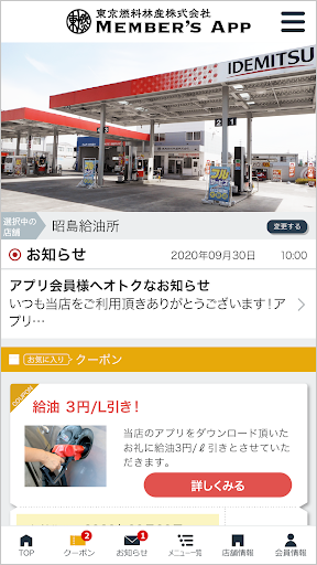 お客様に安心・安全のカーライフをお届けするため、東京燃料林産株式会社のアプリ「東京燃料林産メンバーズアプリ」を通して幅広いサービスを提供いたします。