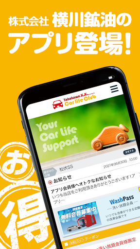 愛車のトータルサポートなら株式会社横川鉱油のアプリ「横川鉱油カ−ライフクラブ」にお任せ下さい!