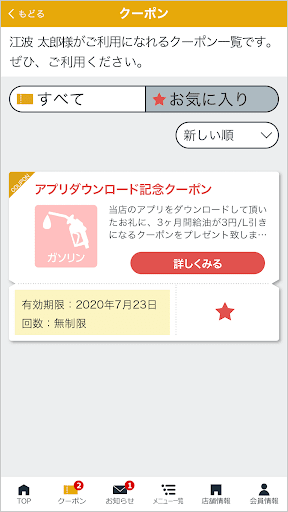 登録した店舗で実施中のキャンペーン情報や各種最新情報をお届けします。