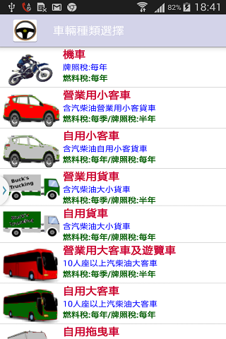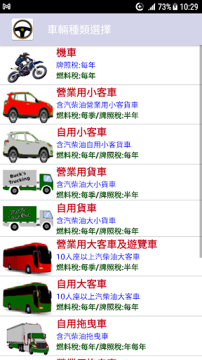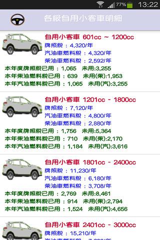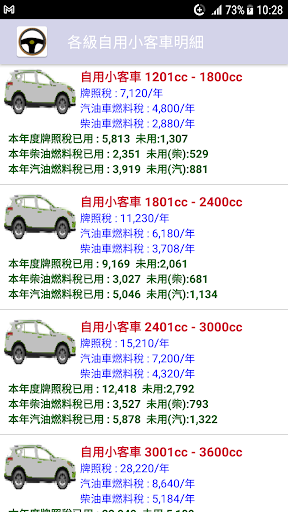提供汽油、柴油、全電能等各式車款等牌照稅燃料稅查詢。