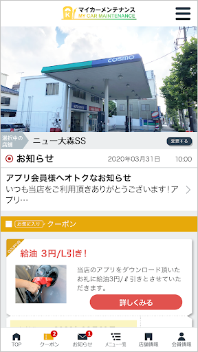 当社の公式アプリ「河原木カーメンテナンスアプリ」では簡単に洗車・コーティングなどのご予約や愛車のメンテナンス管理が可能の他、当店で利用いただけるお得なクーポンや各種メニューの割引情報を配信しております。