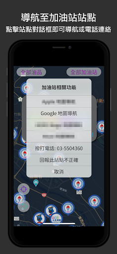 導航功能:地圖加油站點支援打開 Google Map 做站點導航,另外可直接播打電話。