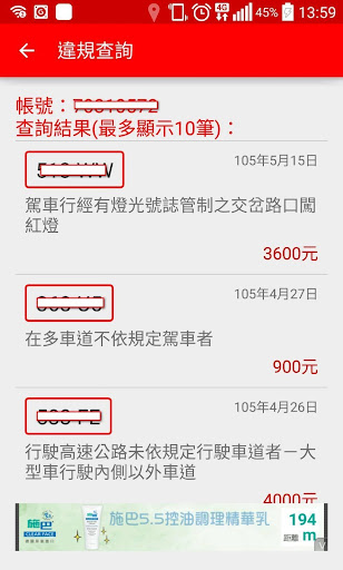 罰單查詢、違規查詢、違規罰單、罰金、罰款等