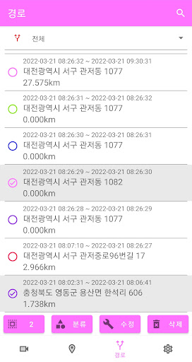 경로 리스트 항목을 롱클릭하면 수정,삭제등을 할 수 있습니다.