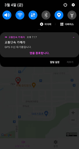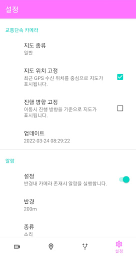 설정 – 현재 위치 반경내 단속 카메라 존재시 알람을 실행합니다.