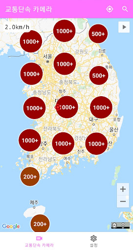 지도상 전국 무인교통단속 카메라 정보를 클러스터링 그룹형태로 제공합니다.