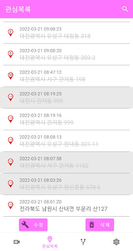 관심목록 리스트 항목을 롱클릭하면 수정,삭제 할 수 있습니다.