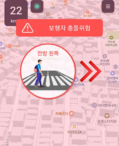 차량 뿐만 아니라 오토바이, 킥보드, 자전거 등 다양한 수단으로 부터 위험 알림을 제공합니다.