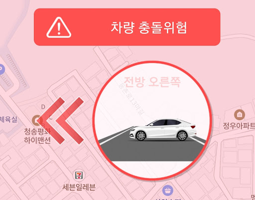 차량 뿐만 아니라 오토바이, 킥보드, 자전거, 보행자 등 다양한 수단에 위험 알림 제공이 가능합니다.