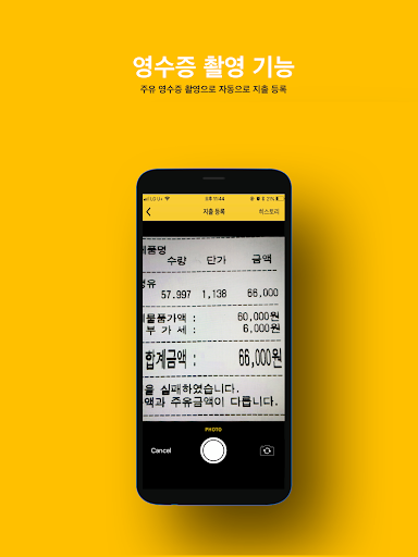 주유한 영수증을 사진으로 바로 찍어서 지출 등록을 해보세요