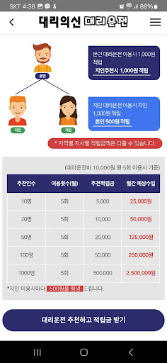 ② 대리의신대리운전 설치하고 이용시 마다 1,000원 적립