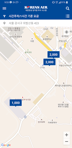 대한항공에서 운영하는 주차장에 대해 정보확인 및
