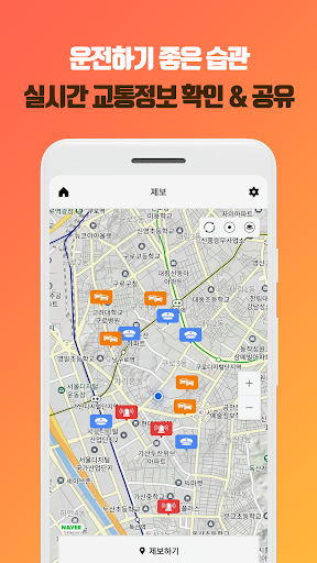 – 제보하기 : 내 주변 단속, 정체, 사고 등의 교통정보 제보 및 확인