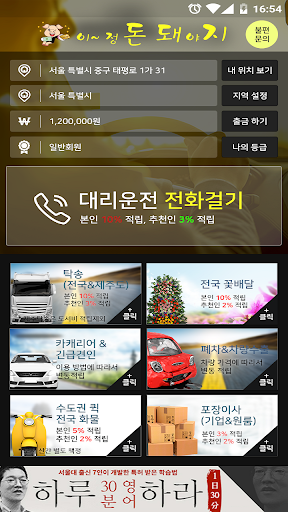 * 돈돼지서비스 앱에는 대리운전 뿐만아니라 퀵서비스,탁송,꽃배달서비스,포장이사,긴급견인서비스등도 이용하실수 있습니다.