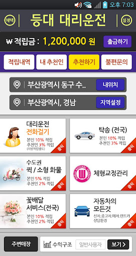 1. 대리운전, 꽃배달 , 퀵서비스 ,탁송 이용시마다 10%를 적립해드립니다.