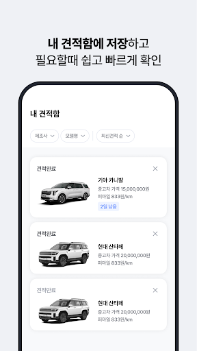 · 언제 어디서든 터치 몇 번으로 손쉽게 나만의 중고차를 비교하고 견적을 낼 수 있어요.