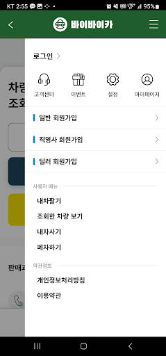 바이바이카 서비스에 차량 정보를 입력하고 중고차 및 폐차 견적을 구성할 수 있습니다.