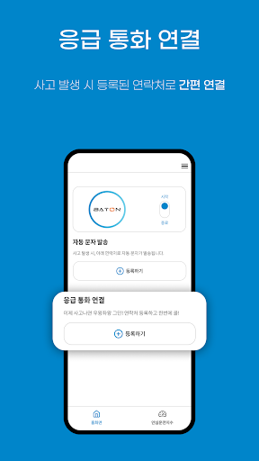 1. 바통TOUCH앱은 차량내 사고를 스스로 인지하여 사고 위치 및 응급 구조 요청을 합니다.