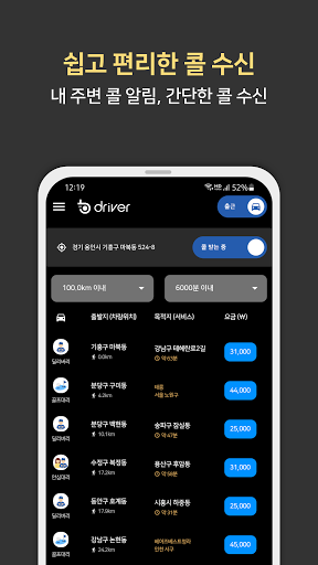 – 위치 : 현재 위치 기반 콜 배정 및 서비스 중 고객에게 드라이버의 위치를 공유하기 위해 제공되는 권한