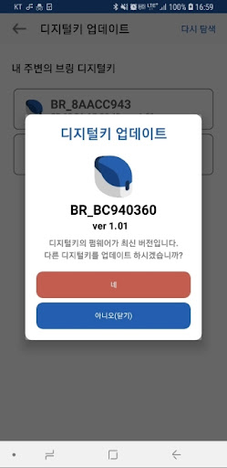 브링앤티 업데이트 앱으로 브링 디지털키의 소프트웨어를 최신 버전으로 업데이트합니다.